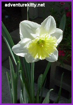 在复活节当天盛开的花,球茎类植物, 应该是水仙的一种.
